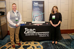![]() Barry Brady (R), regional manager-Southeast at Organic Dyes and Pigments LLC (ORCO), and Vince Hankins (L), vice president of sales at the company, on hand at ORCO’s table top exhibit. | ![]() Kristina Hedlund of Nicca USA and Steve Simsonson at the Nicca tabletop. | ![]() Becky Lien (L) and Jamie Venable of Scientific & Regulatory Consultants, Columbia City, Ind., staff the company's tabletop exhibit. |