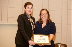 (Right) Education Director Peggy Pickett, who announced she is retiring in April after 30 years with the association, says a few words after being recognized during the Awards Luncheon.