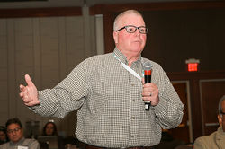 ![]() Dr. Karen Leonas of N.C. State's Wilson College of Textiles, participates in a Young Professionals Panel Discussion. | ![]() Jonathan Harwell of Clemson University gives a summary of a roundtable discussion. | ![]() |