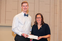 ![]() Rashedul Islam of Central Michigan University receives a check for placing in the Herman and Myrtle Goldstein Student Paper Competition from AATCC President Kerry King. | ![]() Madilynn McCollumn Smith of N.C. State's Wilson College of Textiles receives a check for placing in the Herman and Myrtle Goldstein Student Paper Competition from AATCC President Kerry King. | ![]() Chandler Probert of N.C. State's Wilson College of Textiles receives a check for placing in the Herman and Myrtle Goldstein Student Paper Competition from AATCC President Kerry King. |