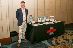 ![]() Rashedul Islam of Central Michigan University presents "Relative Color Pickup of Three Different Knits and Predictive Dyeing Recipe Formulation" during the Herman and Myrtle Goldstein Student Paper competition. | ![]() Madilynn McCollumn Smith of N.C. State's Wilson College of Textiles presents, "Use of a Sweating Manikin Headform to Evaluate the Thermal Burden of Firefighter Protective Hoods" during the Herman and Myrtle Goldstein Student Paper competition. | ![]() Chandler Probert of N.C. State's Wilson College of Textiles presents, "Development of Lab Scale Contact Transfer Test Method of Fireground Contaminants" during the Herman and Myrtle Goldstein Student Paper competition. |